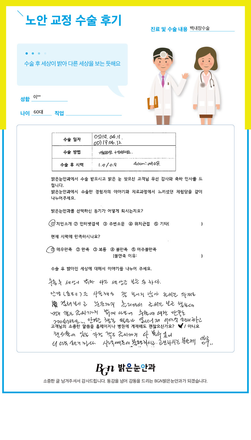 수술 후 전혀 불편한 것이 없네요.