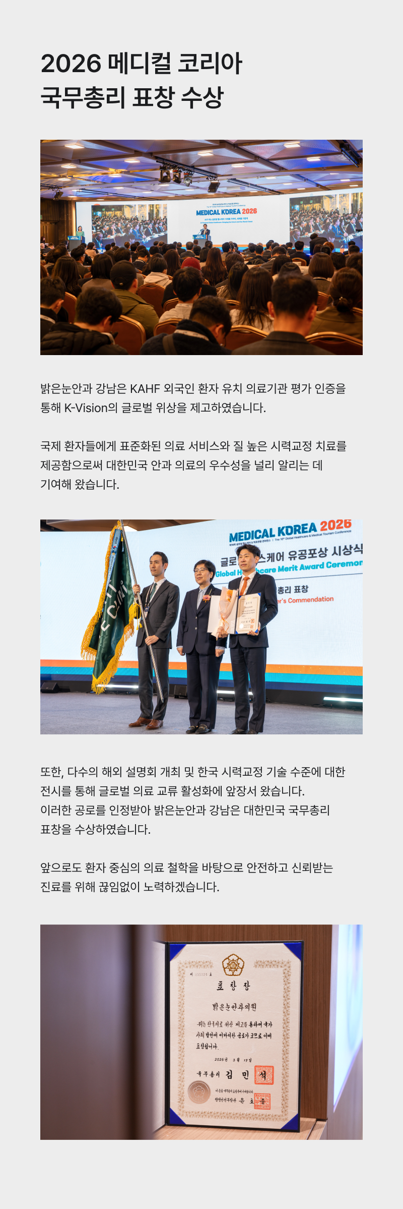 밝은눈안과 강남 2026 메디컬 코리아 국무총리 표창 수상