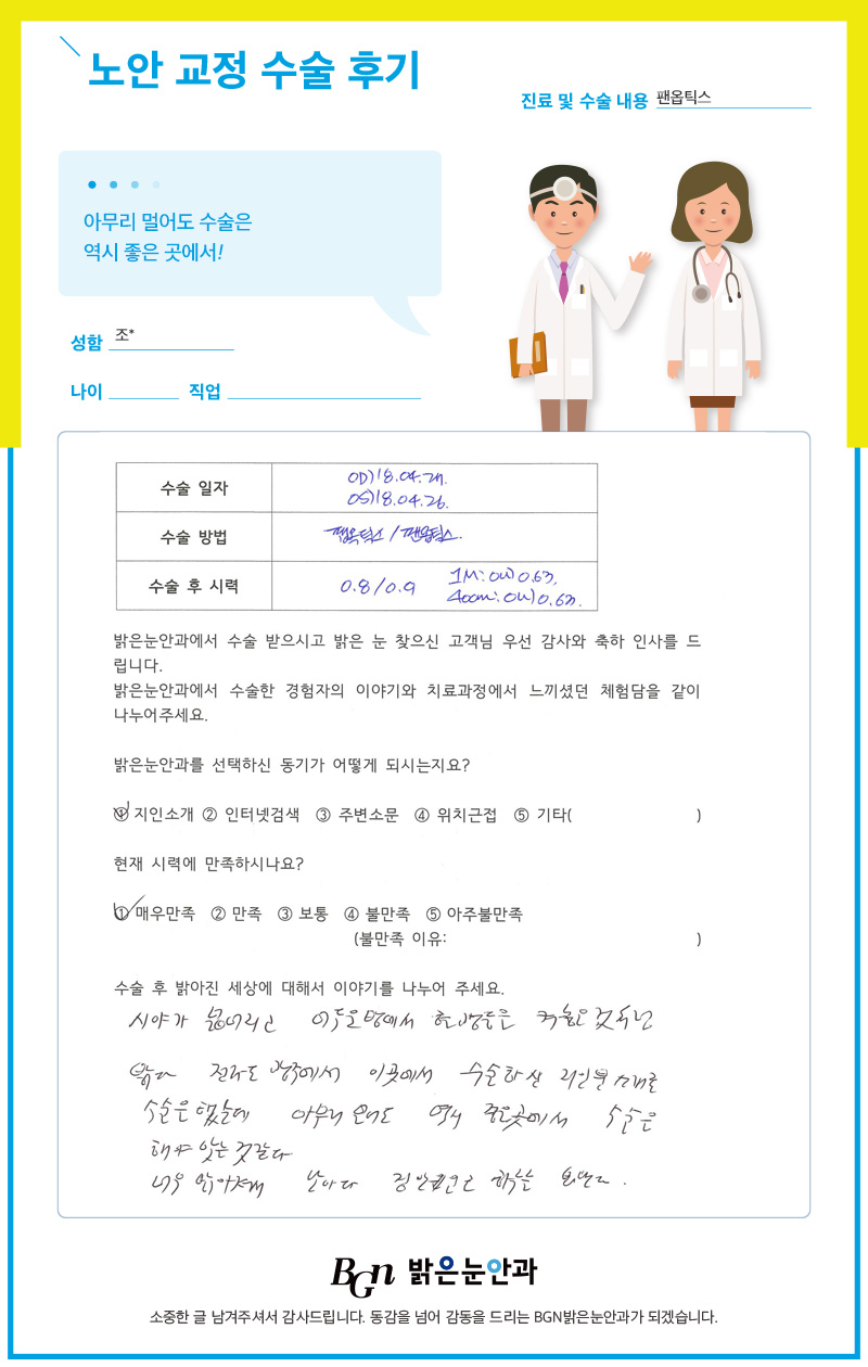 수술 후 먼거리도 잘보이고 한층 밝아진 표정! 지인들에게 추천하고 싶은 밝은눈안과!