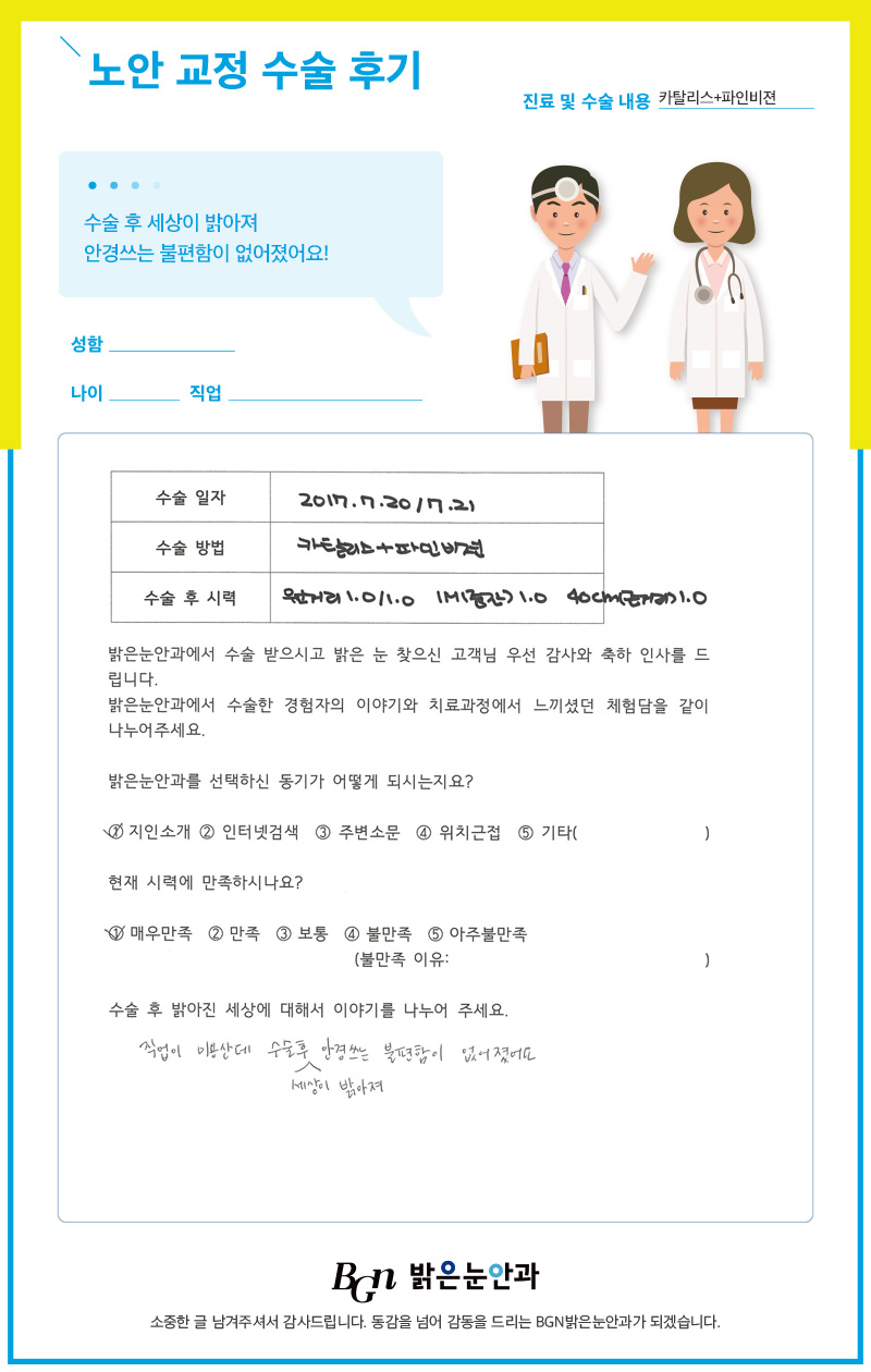 수술 전 흐릿했던 휴대폰 글자가 이제는 선명하게 보여요!