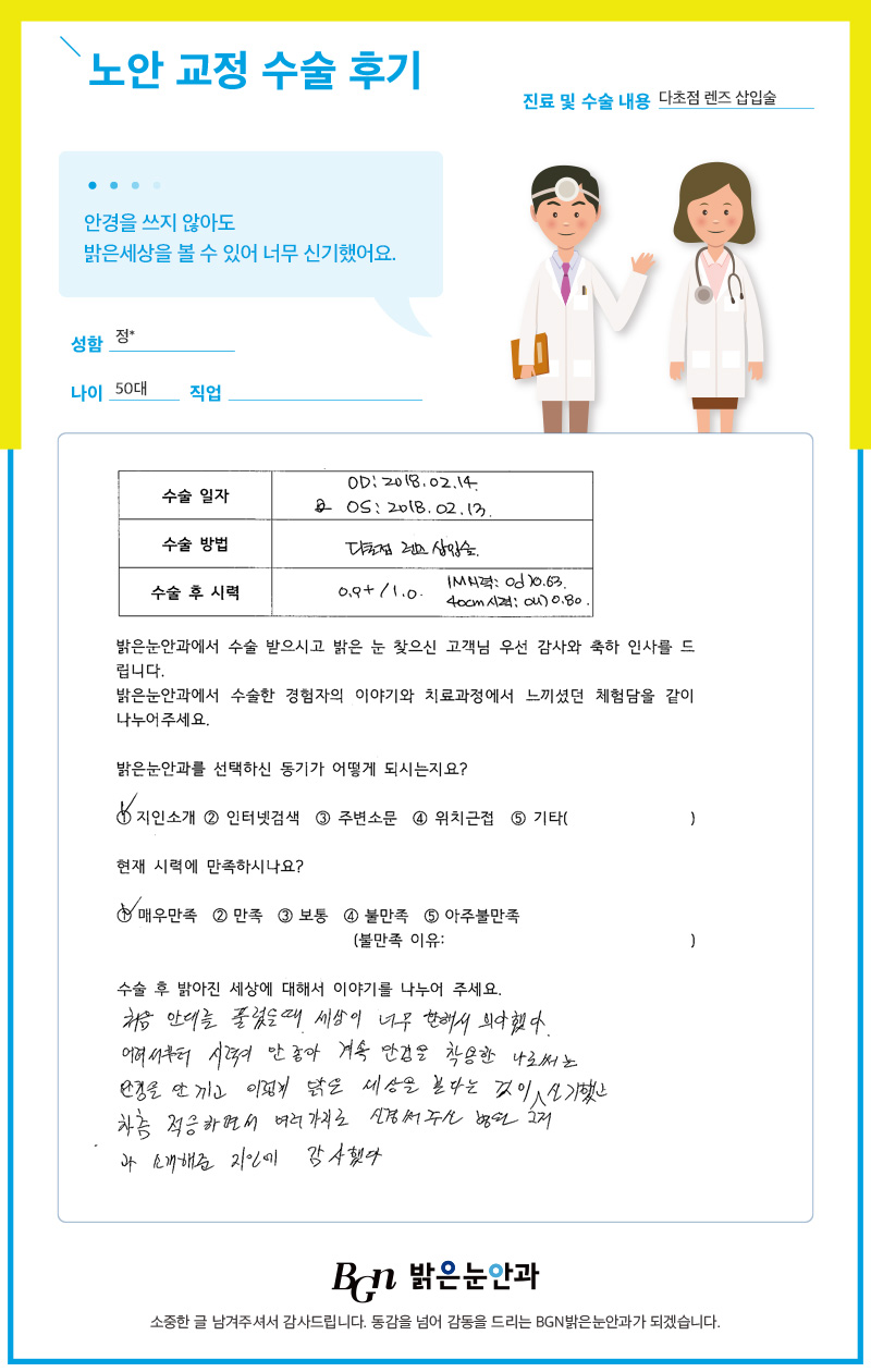 안경을 벗고도 세상을 환하게 볼 수 있다는 것이 너무 만족스러워요!