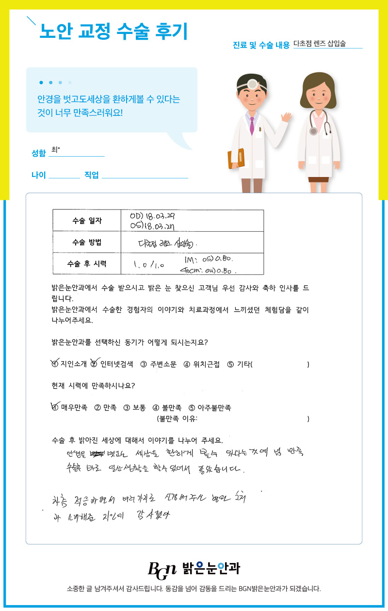 안경을 쓰지 않아도 밝은세상을 볼 수 있어 너무 신기했어요!