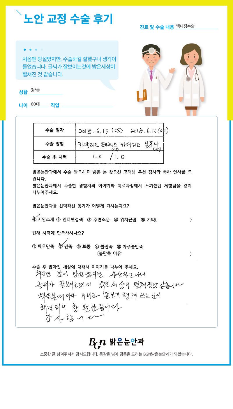 밝은눈안과 선생님들의 친철함을 추천드리고싶어요