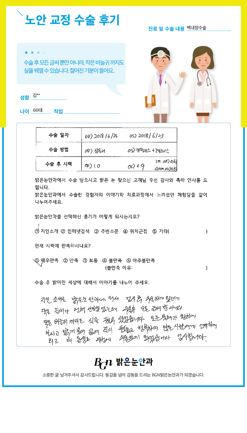 노안으로 스트레스가 심했는데, 너무 잘보이게 되어 행복합니다.
