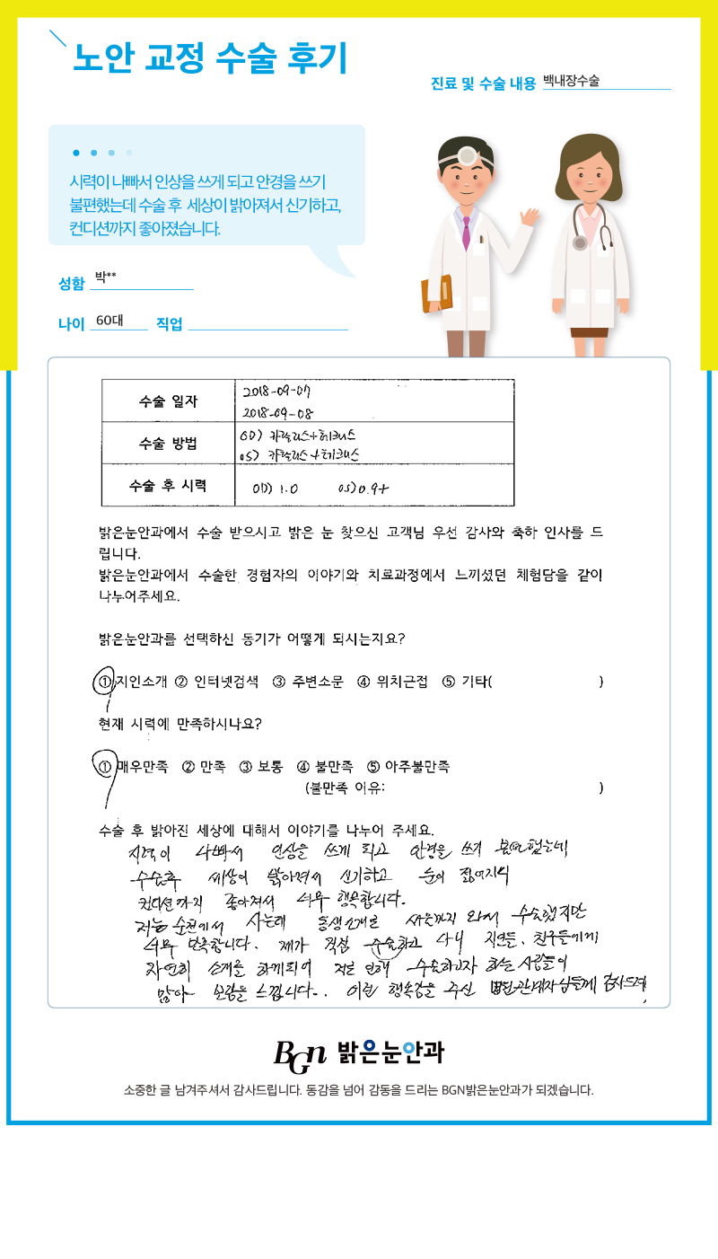 수술 후 세상이 밝아져서 신기합니다.