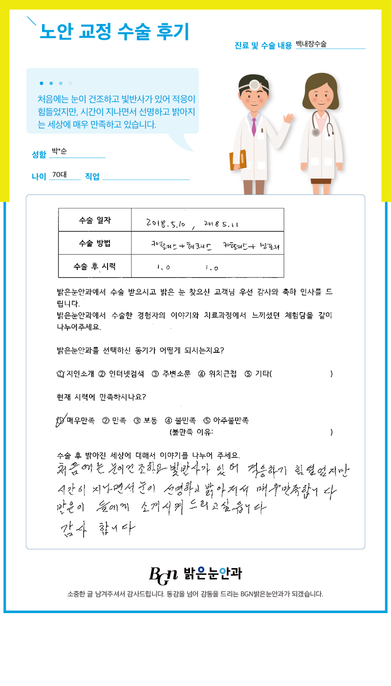 시간이 지나면서 선명하고 밝아지는 세상에 매우 만족하고 있어요.