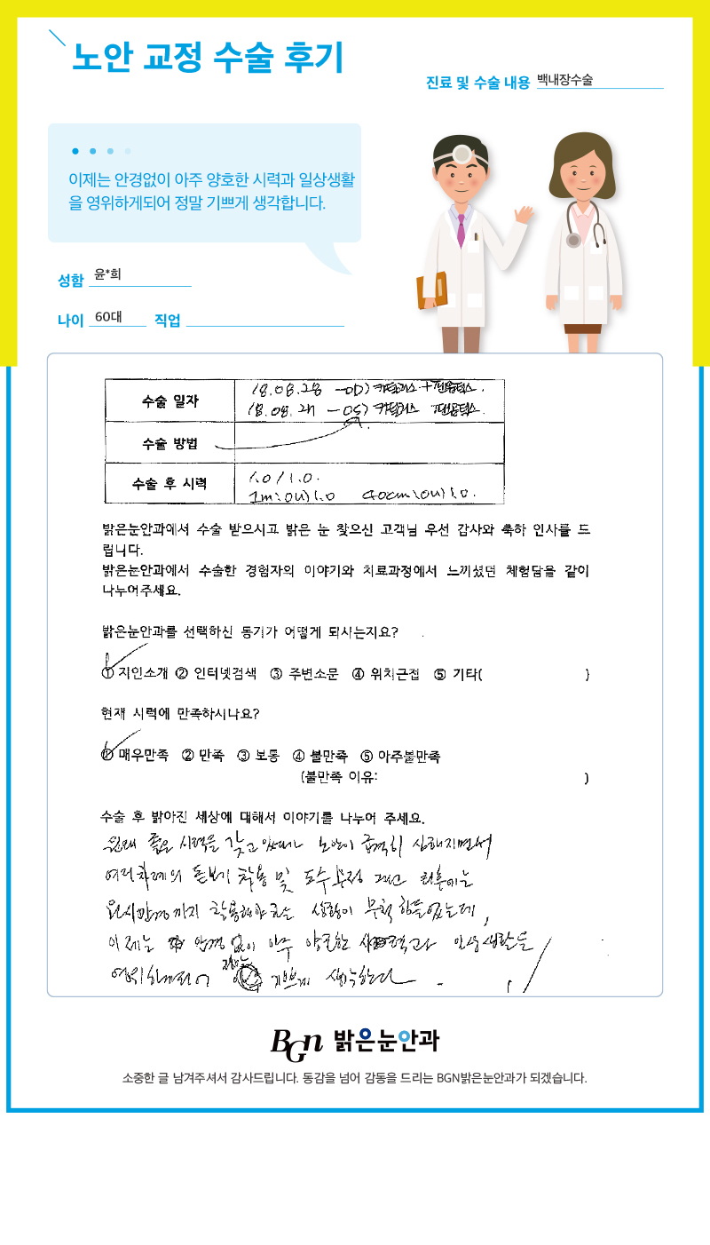 수술을 하고나니 핸드폰도 잘보이고 다시태어난 것 같습니다.