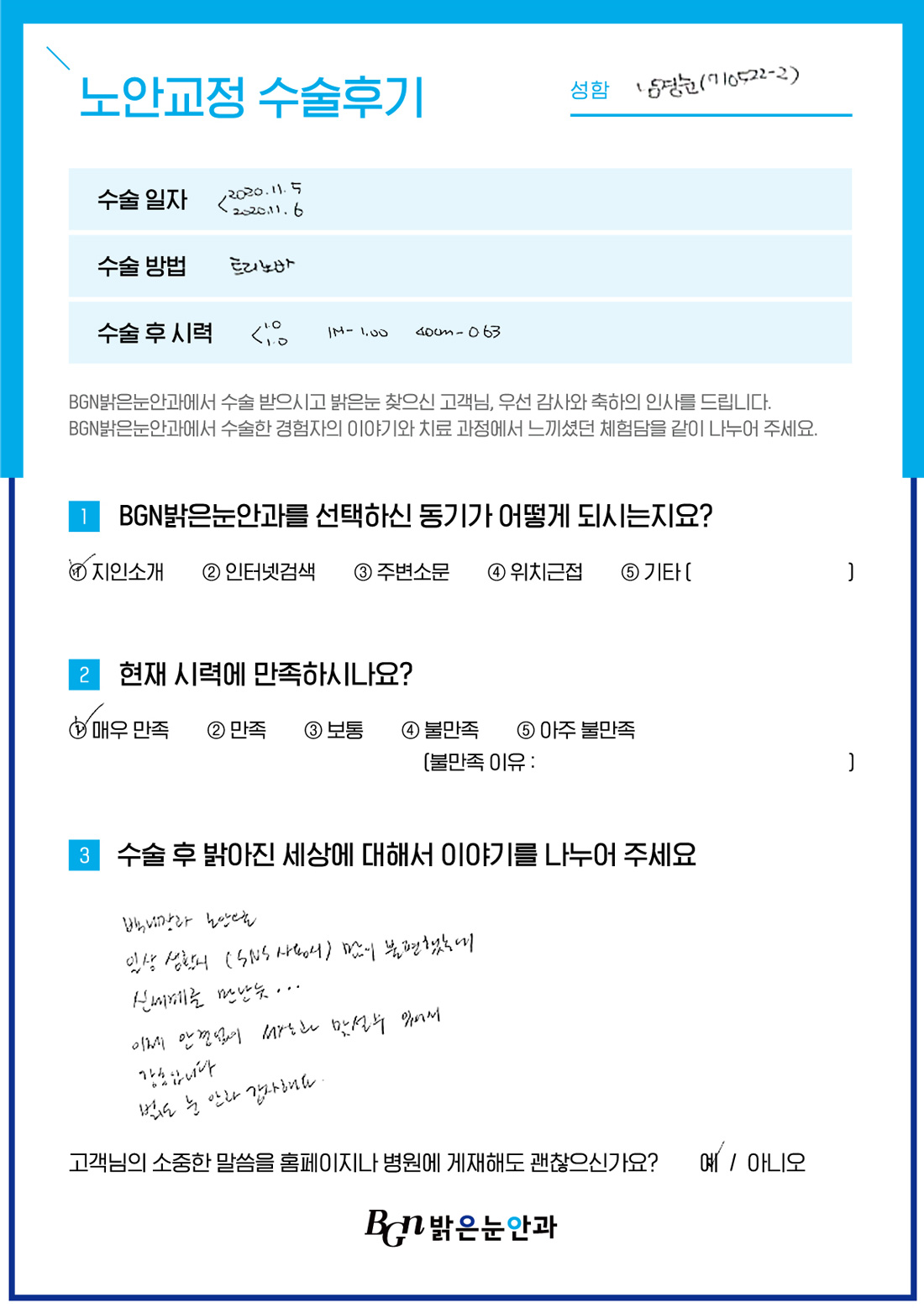 이제 안경없이 세상과 맞설수 있어서 감동입니다