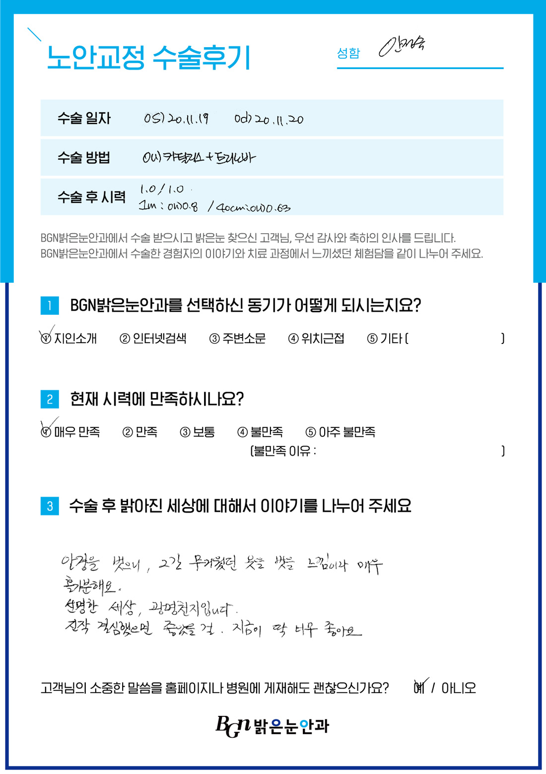 밝은눈안과에서는 본원의 주소 고객님의 휴대폰으로 발송을 위해 아래와 같이 개인정보를 수집하고 있습니다. 필수 : 이름, 휴대폰 번호 이용 기간 : 수집일로 부터 1년(고객 철회 요구시 즉시 파기)